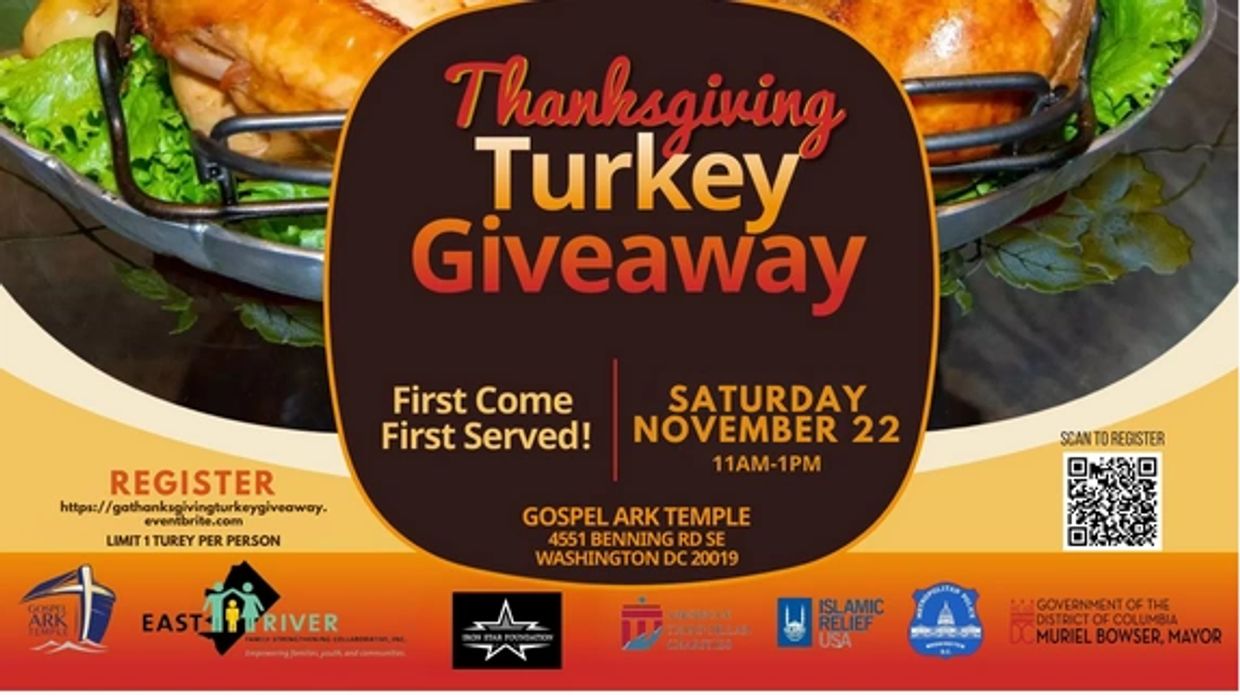 Third Pillar’s Annual Turkey Distribution, scheduled for Saturday, November 22nd, from 11:00 a.m. to 1:00 p.m at Gospel Ark Temple Church located at 4551 Benning RD SE.
